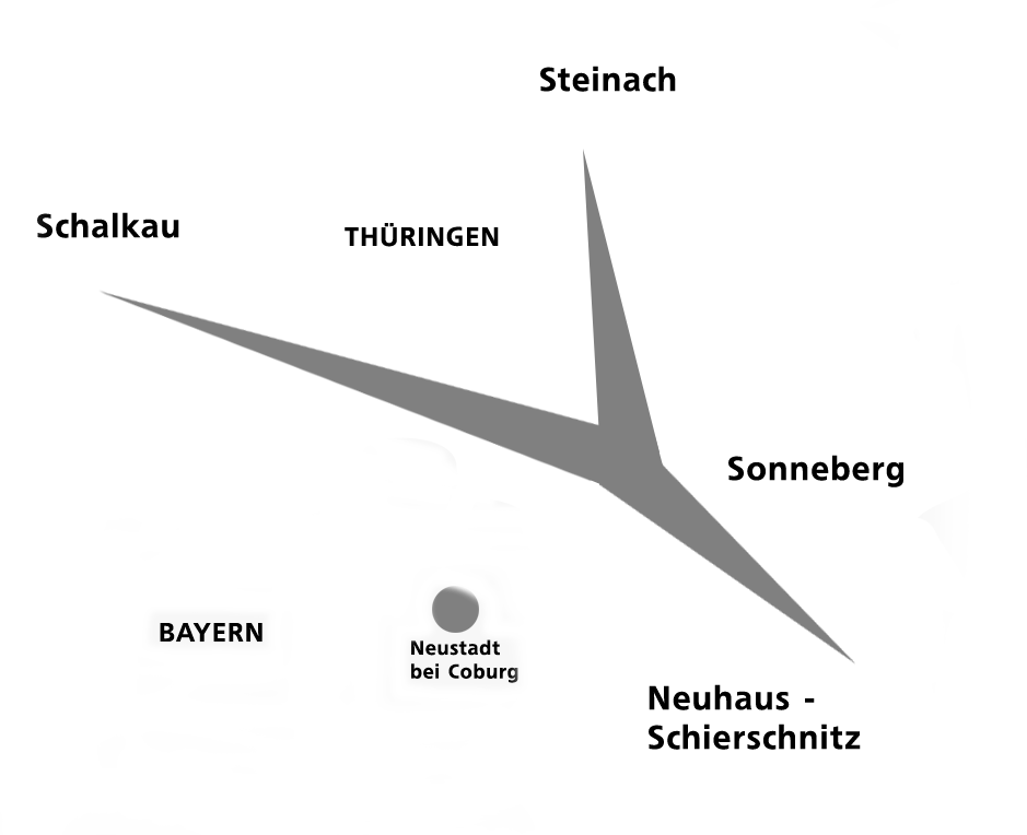 Die Stadt Sonneberg ist Verwaltungssitz des Landkreises Sonneberg und liegt im fränkisch geprägten Süden von Thüringen.